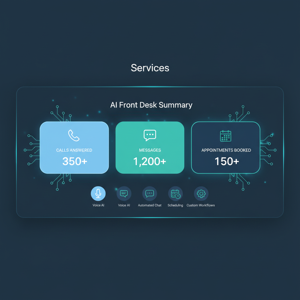 We handle the first layer of communication: answering common questions about your services and availability, capturing caller or visitor details, and, where it makes sense, starting the process of booking an appointment or job. You decide what information we collect and what should always be handed off to a human.